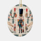 Zauberhafte und zauberhafte Nutcracker Weihnachtsschmuck. Dieses Design zeigt einen charmanten Muskatnussknacker, umgeben von Weihnachtsbildern in sehr Feiertagen und festlichen Farben.
