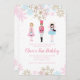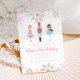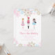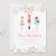 Nutcracker Ballett Witner Geburtstagseinladung mit Gold, Rosa und blauen Schneeflocken.