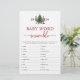 Nutcracker Word Scramble Game. Dieses niedliche und einzigartige Babyduschenspiel im Urlaub bietet handgemalte Wasserfarbe Muskeln, einen schönen Weihnachtsbaum und ein skurriles Muster auf der Rückseite. Finden Sie passende Artikel in der WeihnachtsnachtsNutcracker Kollektion. (Schlüssel - 1. Windeln, 2. Roller, 3. Schnuller, 4. Baby, 5. wertvoll, 6. Schaukelstuhl, 7. Drehstuhl, 8. Milch, 9. Kindersitz, 10. Kinderzimmer, 11. Formel, 12. Stork, 13. Freudenbündel, 14. Lullaby, 15. Decke, 16. Hochstuhl, 1 . Dusche, 18. Teddybär, 19. Bibb, 20. Gummibär)