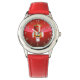 Kinderuhr aus Edelstahl mit rotem Lederarmband