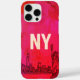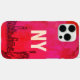 iPhone-Gehäuse mit zentrierter und reduzierter "NY"-Grafik, lebendigem Hintergrund und schwarzer Linie Skyline mit Freiheitsstatue.