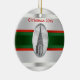 New York City Skyline: Chrysler Gebäude in Schwarz & Weiß - Weihnachtsschmuck Die Skyline von New York City mit dem berühmten Chrysler Gebäude in einem silbernen Look Rahmen mit weißem Gradientenhintergrund mit festlich rotem und grünem Band. Bitte beachten Sie, dass dies auf einem Foto oder einem grafischen Design basiert, das keine Metalle, Edelsteine, Ätzungen oder Prägungen enthält. Das Design wird auf Kartenmaterial, Stoff oder anderem Material des zugrunde liegenden Produkts gedruckt. 2012 ©NYCisMyMuse Alle Rechte vorbehalten