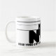 Tasse schwarz-weiß mit drei horizontalen Linien und "NYC NYC NEW YORK CITY-CENTER OF THE UNIVERSE" "NEW YORK CITY". Diese Tasse dreht sich alles um NYC. Es ist ein Schrei in die Stadt, die nie schläft, New York City, NY.