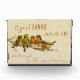 Adorable Vintage Gemälde von Vögeln, die auf einem Bein mit dem Schriftstellervers aus Psalm 136:1 stehen: "O danke dem Herrn; denn Er ist gut ..." Perfekt zum Anzeigen am Erntedank. Entworfen von Simply Scripture; Vogelmalerei mit freundlicher Genehmigung des Old Design Shop.