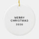 This black and white ornament feature the words in beautiful black hand lettering calligraphy. The word groud is surrounded by black laurel Äste. "Merry Christmas", "2020." You can edit this text using the text editor if you wish to change the date or the greeting.