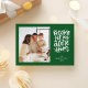 Diese religiöse Weihnachtsfotokarte enthält die Worte "O Komm lass uns verehren Ihn" in Handschrift. Auf der Rückseite der Karte befindet sich ein grüner Hintergrund mit Platz für die Eingabe Ihrer eigenen Nachricht.