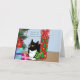 Schwarzweiss-Smokingskatze, die herauf die Verzierungen auf dem Weihnachtsbaum mustert.