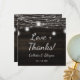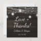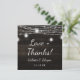 Oak Ridge Rustikales dunkelbraunes Barnholz, glänzende Mason Jars und glänzendes String Lights Design mit zartem Litzen von danglenden Lichtern und Gläsern auf einer tiefen, reichen Holzstruktur mit weißen Akzenten. Mit modernen Typografie-Script-Schriftart. Ein rustikales, elegantes Landhausstil-Design - Personalisierte Hochzeitsfeier Liebe und Dank Platz Dankeschön Karte! ~ Karo mein Shop zu sehen, die gesamte Hochzeitssuite für dieses Design!