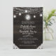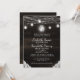 Oak Ridge Rustikales dunkelbraunes Barnholz, glänzende Mason-Jars und glänzendes String-Lights-Design mit winklenden Strängen von danglenden Lichtern und Gläsern auf einer tiefen, reichen Holzstruktur mit weißen Spitzen-Akzenten. Mit modernen Typografie-Script-Schriftart. Ein rustikales, elegantes Landhausdesign - Personalisierte Einladungen für Hochzeiten! ~ Karo mein Shop zu sehen, die gesamte Hochzeitssuite für dieses Design!