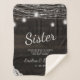 Oak Ridge Rustikales dunkelbraunes Barnholz, glänzende Mason-Jars und glänzendes String-Lights-Design mit winklenden Strängen von danglenden Lichtern und Gläsern auf einer tiefen, reichen Holzstruktur mit weißen Spitzenakzenten. Mit modernen Typografie-Script-Schriftart. Ein rustikales, elegantes Landhausstil-Design - Schwester Trauzeugin Heartfelt Zitat Keepake Sherpa Blanket! ~ Karo mein Shop zu sehen, die gesamte Hochzeitssuite für dieses Design!