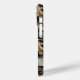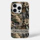 Customize this oak tree camouflage iPhone 15 pro case with your name in a trendy modern CAP font in gray on opaque cream. It's masculine and perfect for your favorite military, hunting, country or outdoorsman!