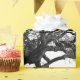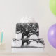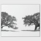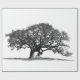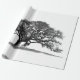 Ein Schwarz-Weiß-Foto eines schönen, sich ausbreitenden Eichenbaumes.