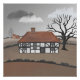 Colourful artwork of an old Wealden farmhouse in the Kent countryside, with oast houses in the background. Perfect for anyone who loves folk art.