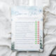Über oder unter Babyduschkarten Babyduschenspiel, Winterthema mit Kiefern und Schneeflocken.