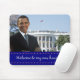 " Willkommen zu meinem neuen Haus…" Barack Obama steht vor dem Weißen Haus mit einem patriotischen Gruß des Willkommens am Einweihungs-Tag.