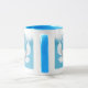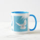 Zweifarbige Tasse mit dem Namen O und Orisha Obatala. Text mit Cowrie-Design zwischen zwei weißen Tauben.