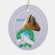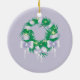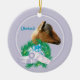 Oberhasli Goat- Holiday Ziege Ornamente mit einem tropischen Flair. Lavendeluntergrund mit pastellfarbenen Geschenkpaketen und Filialen mit hübschem Lavendelverzierung. Jedes Design verfügt über eine Ziegenrasse und auf der Rückseite eine tropische Holiday Kranz.