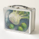 Obst und Gemüse Fenchelgrenzen auf Blauer Platte Metall Brotdose