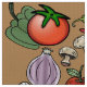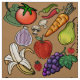 Momma sagt: "Iss deine Grüntöne!" und auch Rot, Purpur und Gelb! Das originelle Muster dieses maßgeschneiderten Stoffes zeichnet sich durch eine helle und farbenfrohe Auswahl an Obst und Gemüse aus, das ich "per Maus" anstriche, wie Bananen, Trauben, Äpfel, Tomaten, Pilze, usw. Set vor karamellbraunem Hintergrund, mit bzw. apropos Überschriften. Ideal für die Küche & Innendekoration, Sommerkleidung, Schlafanzug..