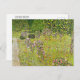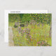 Eine schöne Postkarte mit dem Gemälde, Fruchtgarten mit Rose (c. 1911), von Gustav Klimt (1862-1918), einem österreichischen Künstler aus der Jugendstil-Zeit. Eine Rose Gartenlandschaft mit Apfelbäumen im Hintergrund.
