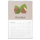 Ein 12-monatiger Kalender mit verschiedenen Früchten für jeden und pastellfarbenen Hintergrund. Ein nettes Geschenk für vegan, ein Koch oder ein Gärtner! Der Kalender umfasst Zitrone, Banane, Feigen, Apfel, Erdbeere, Kirsche, Heidelbeeren, Mirabellpflaume, Haselnüsse, Walnüsse, Kastanien, Orange und einen Apfelkern!
