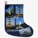 Dieser niedliche blaue Strumpf zeigt die fünf Leuchttürme an den Außenbänken in North Carolina
