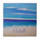 Personalisierte Ozeanziegel Keramik Kachel, mit einem abstrakten Strandbild Bild. Ich malte dieses Stück vor Jahren und es erinnert mich an einen Besuch in Florida mit meiner Familie. Mit blauer Schrift können Sie mit Ihren eigenen Informationen personalisieren. Ideal, um eine persönliche Touch zu dieser einzigartigen Wohngestaltung hinzuzufügen.