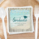 Diese rustikalen Strandutenserien mit Abitur-Party-Papierservietten bieten eine reizende Pastellbadezene mit Wassergymnastik am Ufer, gerahmt mit rustikalem, verwittertem Holz, und dekoriert auf der Spitze mit Saitenleuchten. Das Wort Graduate wird mit einem Graduiertencap überragt, und der Name der Absolventen und das Unterrichtsjahr sind darunter.