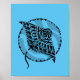 Cooles blaues Poster mit einem schwarzen Manta Ray Design. Die Manta Ray wurde in einem Tätowierungsstil eines Stammes erschaffen.
