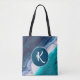 Ein blau-weißes abstrakte, das mich an Meereswellen erinnert, mit Platz für Ihr eigenes Monogramm. Sie können den Stil des Schriftartes nach Ihren Wünschen ändern.