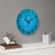 Eine Yoga-Uhr mit einer Dame, die auf einem Yang mit aquamarinen, grünen und blauen Ozeanfarben balanciert.