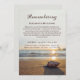 Beachthemed Tod Jubiläum Einladung zu feiern und zu ehren, die Erinnerung an Ihre Lieben. Das Gedenken an den Ozean ist in einem eleganten Skript über die Einladung geschrieben. Fügen Sie die Einladung, den Namen Ihres Lieben und die Einzelheiten der Feier in eleganten braunen Schriftart gegen ein Foto einer Conch auf einem Strand liegen.