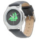 Kinder Edelstahluhr mit schwarzem Lederarmband