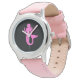 Kinderuhr aus Edelstahl mit rosa Lederarmband