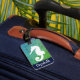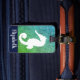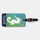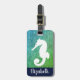 Ozeanfarben in Grüntöne und Blues mit einem Gepäckanhänger aus weißem Seepferd mit personalisiertem Namen in der Schrift.