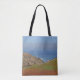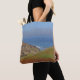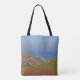 Mit dieser Tüte mit einem landschaftlichen Foto, das die sanften Hügel und Sanddünen mit den sanften Wellen und dem blauen Horizont in der Ferne einfängt, verleihen Sie Ihren Einkaufs- und Einkaufsmöglichkeiten einen kleinen Küstentisch. Die nahen Dünen sind von grünen Pflanze an der Küste bedeckt. Der Ozean ist in schönen Blautönen gehalten.