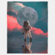 Ocean Moonwalk ist ein farbenprächtiges futuristisches, digital verändertes Foto mit einem Astronauten, der auf der Oberfläche eines Sees mit dem Mond und farbenfrohen Wolken im Hintergrund spaziert. #space #spaceage #spacethemed #astronaut #astronomaut #fantasy #moon #moonlanding #sea #sunset #clouds #colorful #vibrant #stars