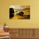 Ein atemberaubender Ausblick auf einen Orangen Sonnenuntergang über dem Ozean und die Wellen, die das Ufer des Ozeans treffen. Ein großer Felsen am Ufer mit den Wellen, die sich gegen ihn stürzen.. das ist ein wunderschönes Foto auf diesem Poster mit dem Sprichwort. Johannes 3:16: "Denn Gott liebte die Welt so, dass er seinem einen und einzigen Sohn gegeben hat, sodass wer an ihn glaubt, nicht zugrunde gehen wird, sondern ewiges Leben haben wird.
