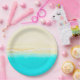 Das Meer, das aquamarine Wasser, der Sandstrand, die Teller aus Papier sind perfekt für eine Hochzeit am Strand oder eine Babydusche.