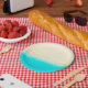Das Meer, das aquamarine Wasser, der Sandstrand, die Teller aus Papier sind perfekt für eine Hochzeit am Strand oder eine Babydusche.