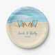 Zwei Liegestühle stehen am Ufer, um das glückliche Paar auf diesem ruhigen, ozeanbezogenen Teller zu repräsentieren. Alle Formulierungen können in Anzug JEDES Fest geändert werden und der Teller kann für eine Hochzeit, Dusche, Verlobung, Jubiläumsfeier oder Geburtstagsparty angepasst werden. Ideal für Ihre Veranstaltung zum Thema Strand, Hochzeit in Urlaubsort oder andere Veranstaltungen. Verfügbar mit passenden Produkten.