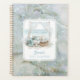 Dieser schöne Strandplaner zeichnet sich durch ein Aquarelldesign aus. Die Grafik eines Strandhüttenbettes mit dem Ozean, umgeben von einem blauen, glitzernden Hintergrund. Die verwendeten Farben sind Schieferblau, Waldgrün, Elfenbein und Bräune.