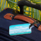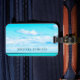 Ikonische Strandlandschaft mit vorwiegend blauen und aqua-farbenen Farben. Der Name wird leicht in Ihr eigenes A-Gepäckanhänger für Ihre Reisen geändert. Ein perfektes Vatertagsgeschenk.