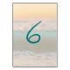 Tischnummern mit Hintergrundbild für den Sonnenaufgang im Ozean. Die Zahlen werden auf beiden Seiten gedruckt, um von jedem Teil des Raumes aus leicht zu sehen. Zahlen sollten einzeln hinzugefügt und in den Warenkorb aufgenommen werden. Klicken Sie auf den Artikel im Warenkorb, um zum Produkt zurückzukehren und die Nummer für die nächste Karte zu ändern.