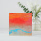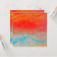 Ein abstraktes Design eines Ozeansonnenuntergangs mit kühnen Farben in Rot, Orange, Cyan, Blau und Beige.