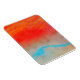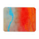 Ein abstraktes Design eines Ozeansonnenuntergangs mit kühnen Farben in Rot, Orange, Cyan, Blau und Beige.