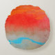 Ein abstraktes Design eines Ozeansonnenuntergangs mit kühnen Farben in Rot, Orange, Cyan, Blau und Beige.