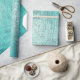 Ocean Tiffany Aqua Paint Stripes Linen Metallic Geschenkpapier