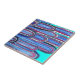 Ein Printdesign aus handgezeichneter und gemalter Kunst. Dieses blaue, lila und türkisfarbene, wellenförmige Muster ist ein grafisches Kunstdoodle, das durch die sanften Wellen des Ozeans, die an der Küste zapfen, inspiriert wurde. Perfekte coole Farben für Accessoires und für den Sommer.