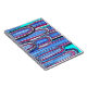 Ein Printdesign aus handgezeichneter und gemalter Kunst. Dieses blaue, lila und türkisfarbene, wellenförmige Muster ist ein grafisches Kunstdoodle, das durch die sanften Wellen des Ozeans, die an der Küste zapfen, inspiriert wurde. Perfekte coole Farben für Accessoires und für den Sommer.
